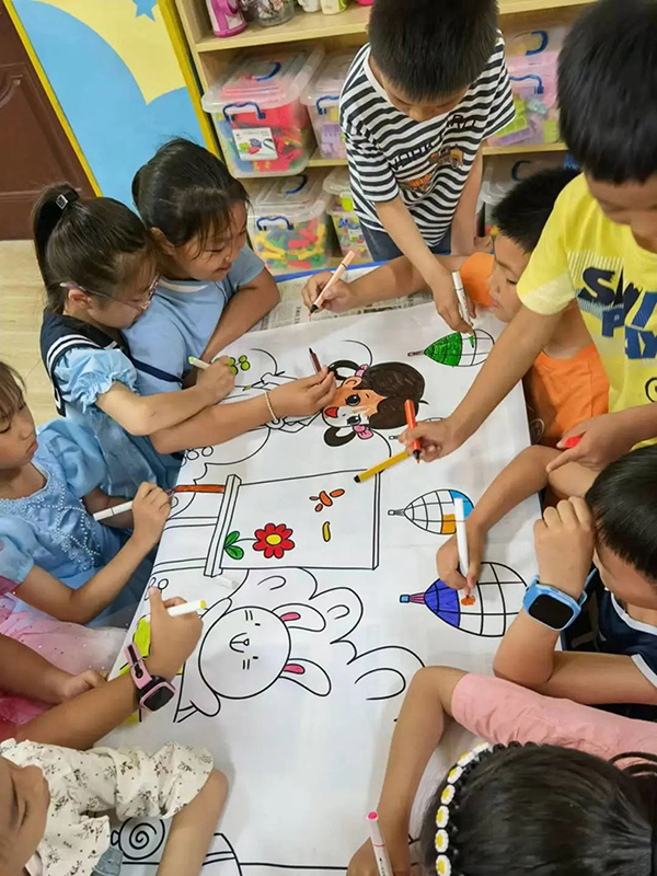 全體小朋友先對(duì)喜愛(ài)的美術(shù)作品進(jìn)行投票,再一起進(jìn)行涂鴉活動(dòng),在涂涂畫畫中激發(fā)了孩子們感受美、表現(xiàn)美、創(chuàng)造美的情感。