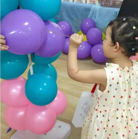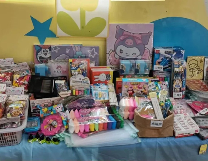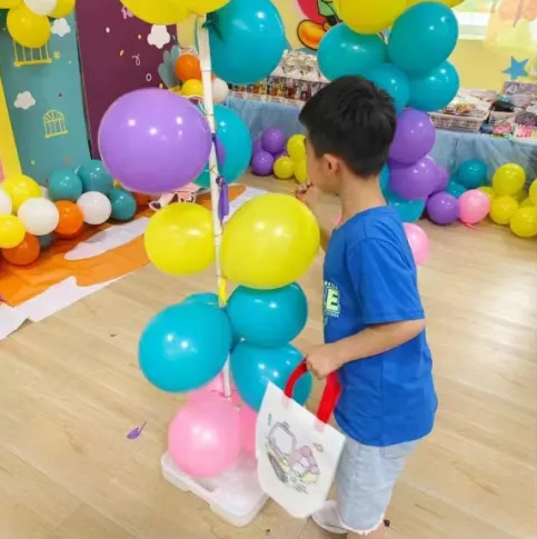 “四點半”活動中心貼心地為小朋友準備了許多小游戲,贏取禮品。 第一項游戲是扎氣球。每位小朋友都可以隨機扎破一個氣球,贏取藏在氣球里的小禮品。隨著一聲聲的“嘭”,小朋友興奮地撿起氣球里的紙條去兌換禮品。