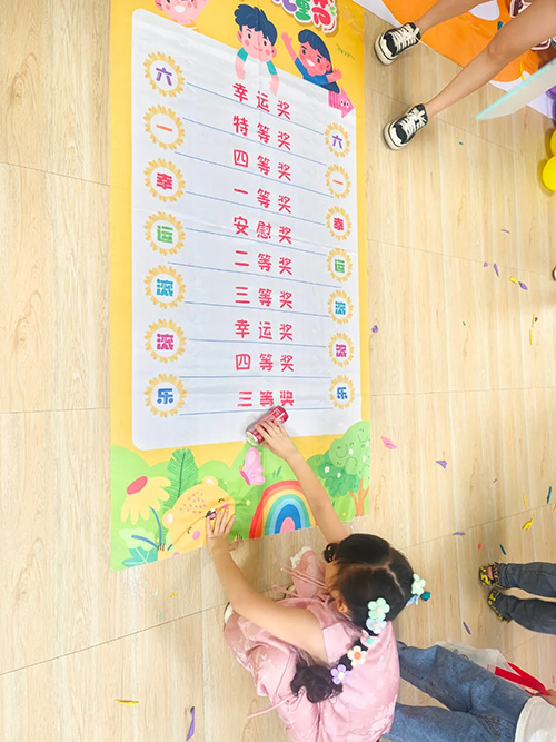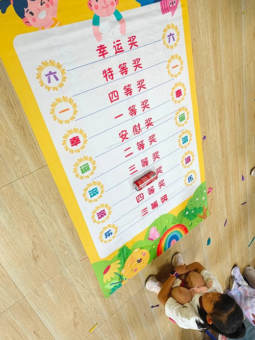 第三項游戲是滾滾樂,滾動的可樂滾到哪里,就獲得對應的獎品。小朋友通過這三個小游戲每個人的手提袋都收獲滿滿。