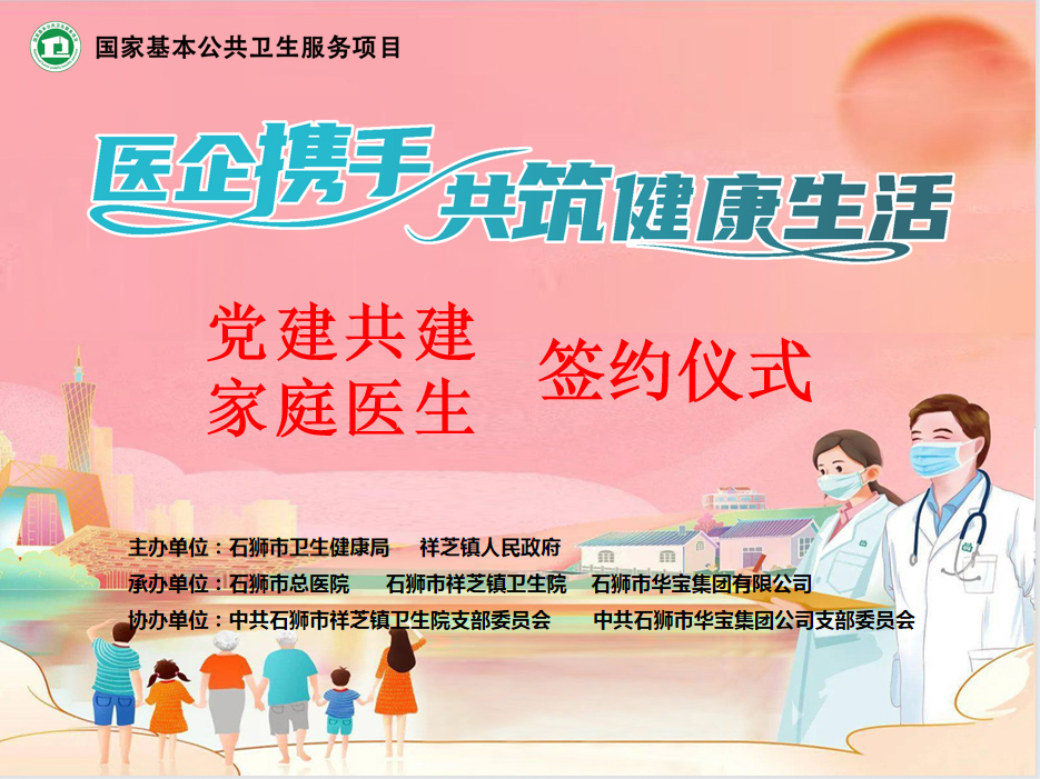 重要會(huì)議解讀 2023年5月12日,石獅市華寶集團(tuán)有限公司與祥芝鎮(zhèn)衛(wèi)生院舉行了《石獅市祥芝鎮(zhèn)衛(wèi)生院家庭醫(yī)生簽約協(xié)議》和《黨建共建協(xié)議書(shū)》簽約儀式。華寶集團(tuán)副總經(jīng)理吳世金和祥芝鎮(zhèn)衛(wèi)生院副院長(zhǎng)王明云出席儀式并簽約。華寶集團(tuán)黨支部書(shū)記、工會(huì)主席師體偉和祥芝鎮(zhèn)衛(wèi)生副院長(zhǎng)王明云分別發(fā)表講話(huà)。