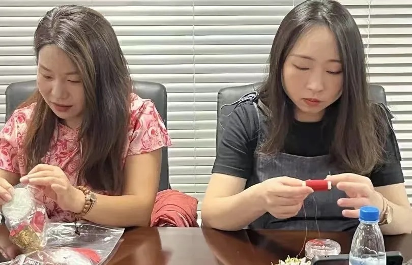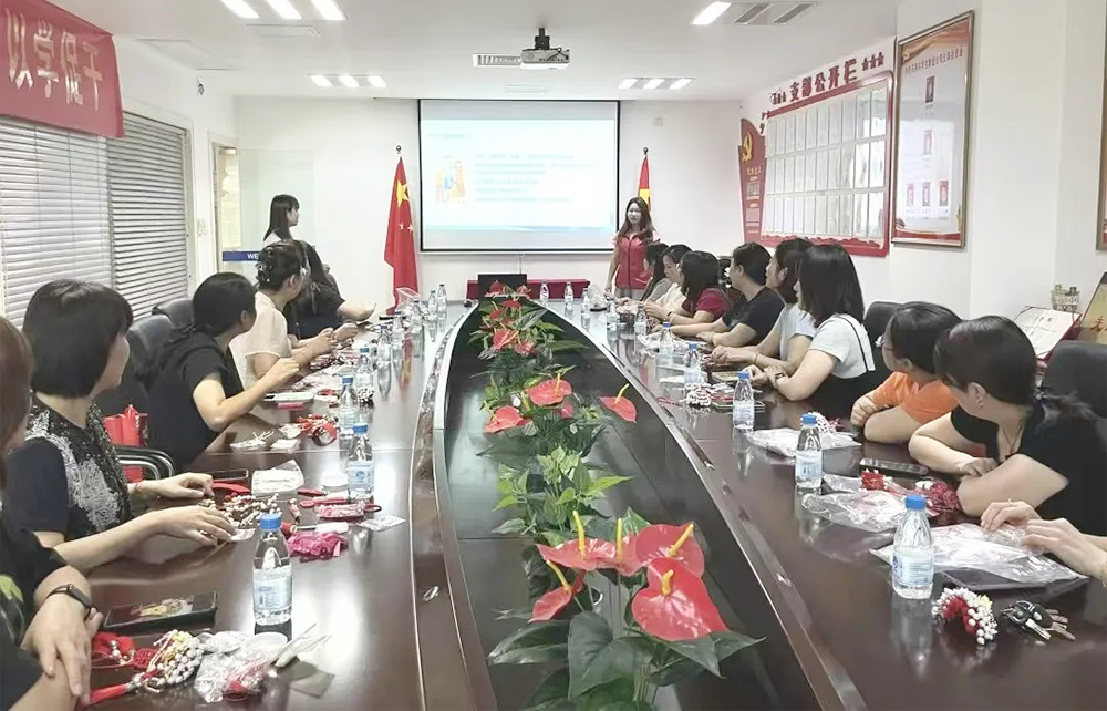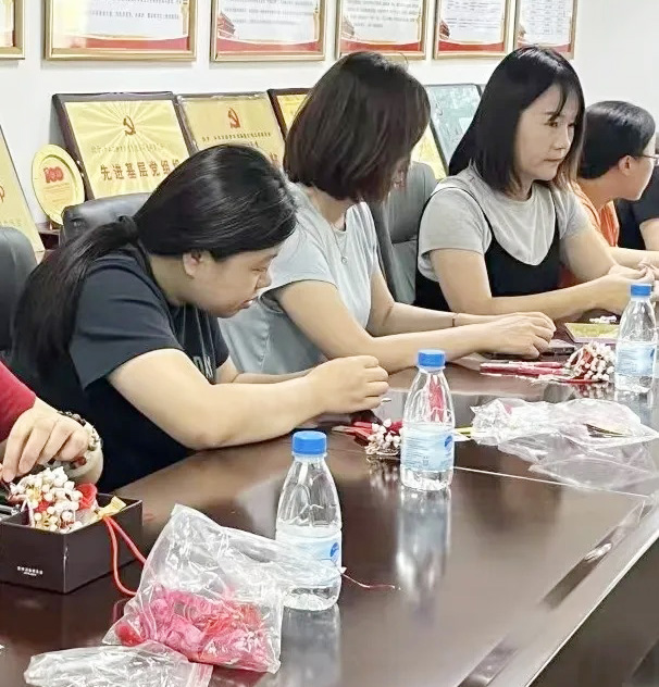 最后,石獅市華寶集團(tuán)婦聯(lián)成員以珍珠為瓣,金絲為媒,鳳凰為翼,通過“截”、“折”、“扭”、“串”等系列動作,將一頂頂鳳冠掛件制作完成。傳統(tǒng)冠飾的工藝嚴(yán)謹(jǐn),象征著家風(fēng)中的規(guī)矩與教養(yǎng),以鳳冠為象征,賦予家風(fēng)精神內(nèi)涵。