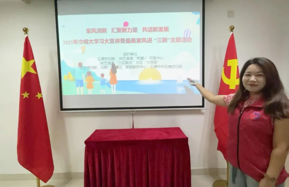 為深化“三新”婦聯(lián)組織建設(shè),充分發(fā)揮引領(lǐng)服務(wù)聯(lián)系婦女群眾作用,傳播科學(xué)家教知識,賦能“三新”領(lǐng)域女性成長。6月12日,石獅市婦聯(lián)、祥芝漁港“黨建+”鄰里中心、祥芝漁港“三區(qū)聯(lián)創(chuàng)”片區(qū)“大黨委”、祥芝鎮(zhèn)婦聯(lián)、婦聯(lián)“咱厝邊”家庭服務(wù)中心、石獅市華寶集團(tuán)婦聯(lián)共同開展2025年巾幗大學(xué)習(xí)大宣講暨最美家風(fēng)進(jìn) “三新”主題活動。